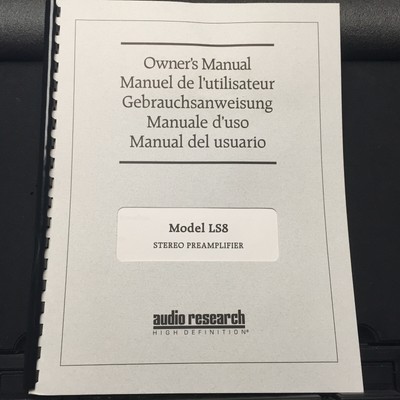 Original Owner Manual For The Audio Research Ls8 Preamplifier