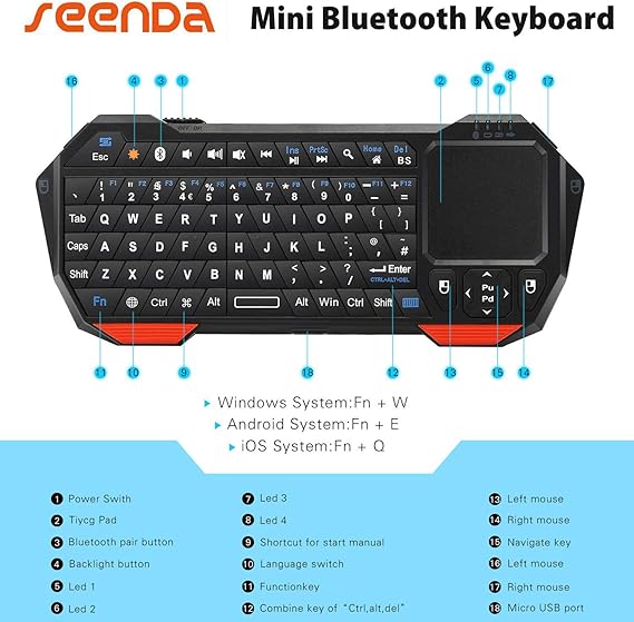 Seenda Mini Bluetooth Keyboard W Touchpad Compatible With Android Os Windows Qq Tech Version Portable And Phone Projector Smartphone Projector Mini Keyboard