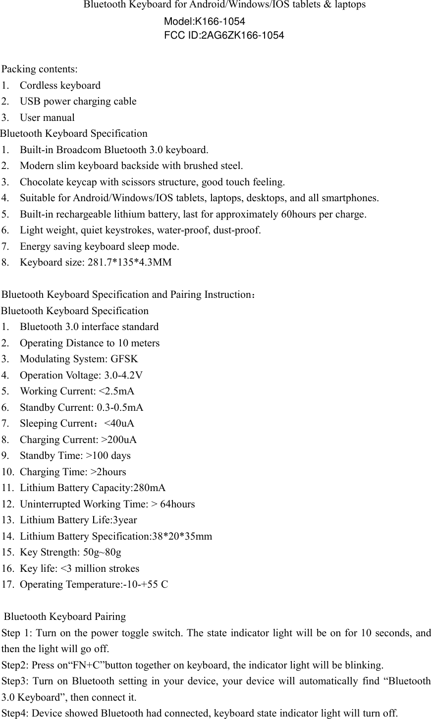 16bk3001 Bluetooth Keyboard User Manual Shenzhen B W Electronics Development
