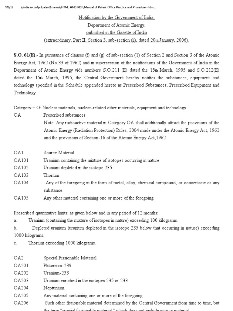 Thoriumscam Standing Order 61 E Under Atomic Energy Act 1963
